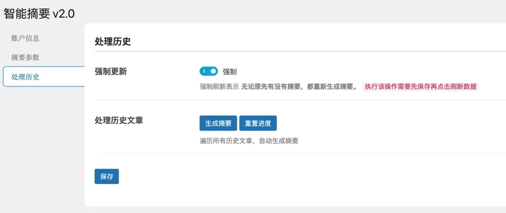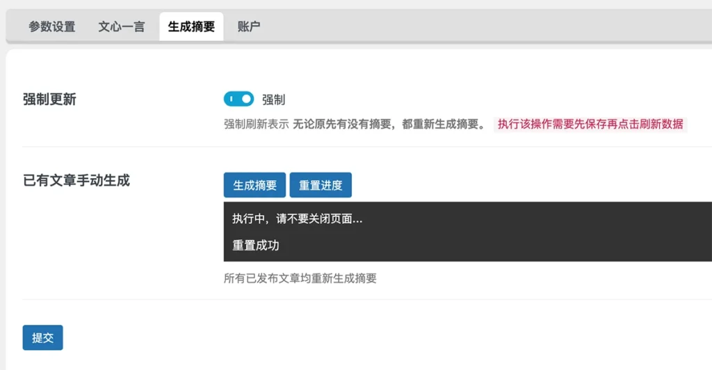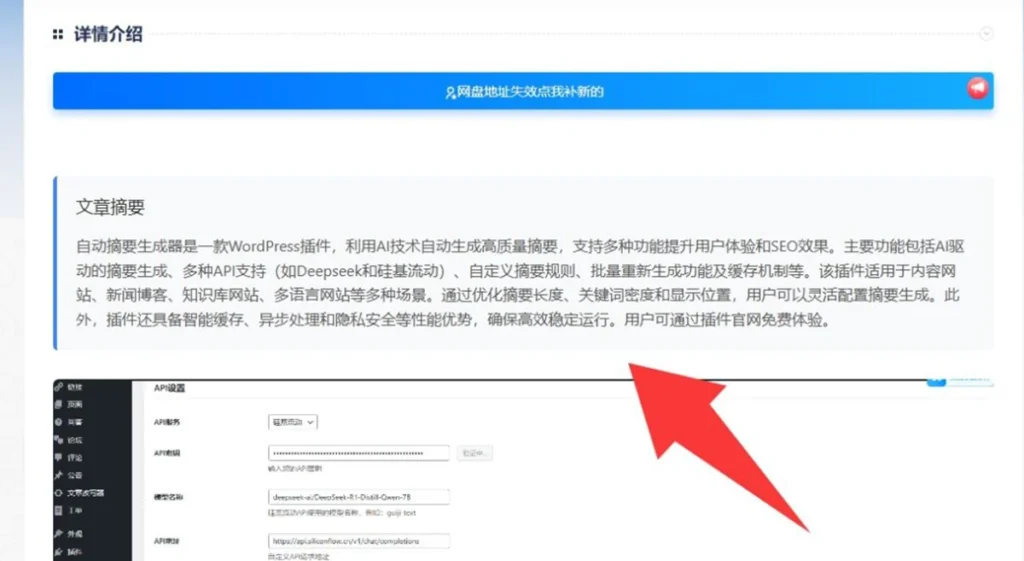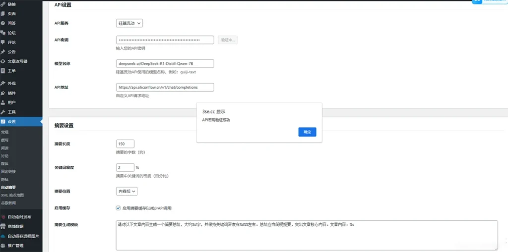 AI 自动摘要生成器:利用先进的 AI 技术自动生成文章摘要,支持 Deepseek、硅基流动等多种 AI API 服务,可自定义摘要生成规则、长度、关键词密度等,还具备批量重新生成、缓存机制等功能。