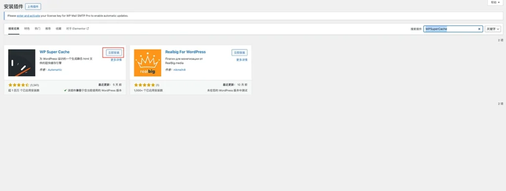 加速插件:WPSuperCache是一款常用的加速插件,能通过缓存静态HTML页面来提高网站性能和速度。同样在“插件”->“安装插件”中搜索“WPSuperCache”,安装并激活。