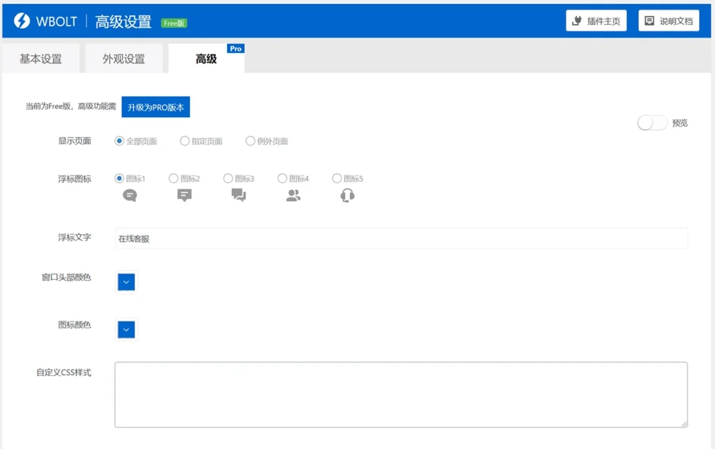 * 显示页面-支持所有页面、指定页面或者例外页面显示在线客服组件;