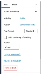 - 在文章编辑界面,您可以点击“取消”/“移至回收站”上方的“复制到新草稿”或在管理栏中点击该按钮。