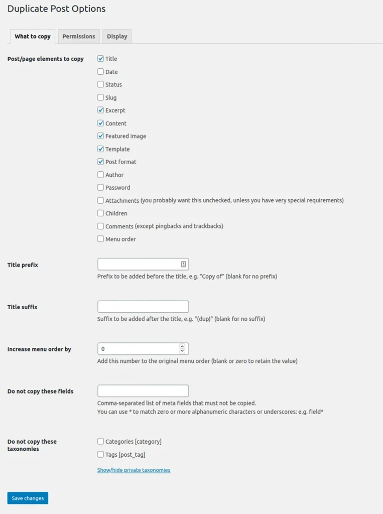 重复帖子功能提供了许多实用设置,可用于自定义其行为,并将其使用限制在特定角色或帖子类型。请访问yoast.com查看详细文档以及我们的开发者文档。