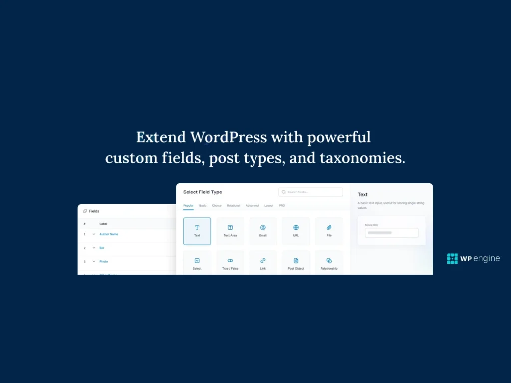 Advanced Custom Fields (ACF®) 通过提供各种工具,让您能够更好地利用数据,从而将 WordPress 网站变成一个功能齐全的内容管理系统。