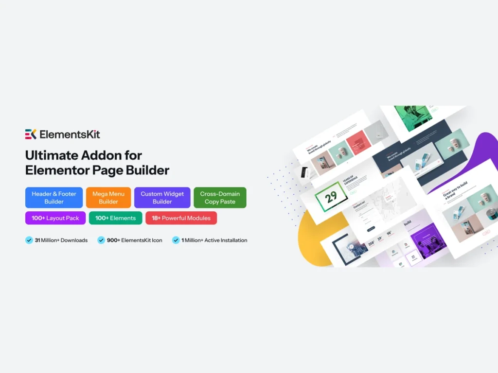 ElementsKit Elementor 插件是 Elementor 页面构建器的终极一体化插件。它提供了一个全面的解决方案,包含90 多个Elementor 小部件、 18 多个模块以及900 多个预先设计的 Elementor 模板。